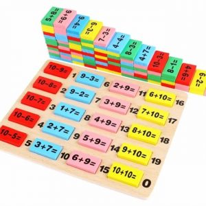 This activity comes with a board numbered from No 1 – 19 for addition and subtraction memory activities. The child is meant to pick a tile example 2 + 8 and place that tile next to No 10 on the board.